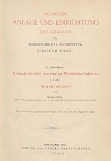 Handbuch der Architektur ; Gebäude für Heil- und sonstige Wohlfahrts-Anstalten ; Entwerfen, Anlage und Einrichtung der Gebäude ; Zwiększenie dostępności zbiorów PWr