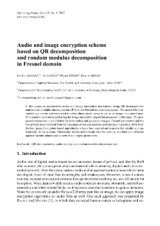 | Audio and image encryption scheme based on QR decomposition and random modulus decomposition in Fresnel domain | 28 lut 2025 |