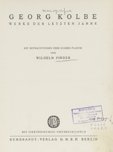 | Georg Kolbe : Werke der letzten Jahre mit Betrachtungen über Kolbes Plastik von Wilhelm Pinder | 11 lut 2019 |